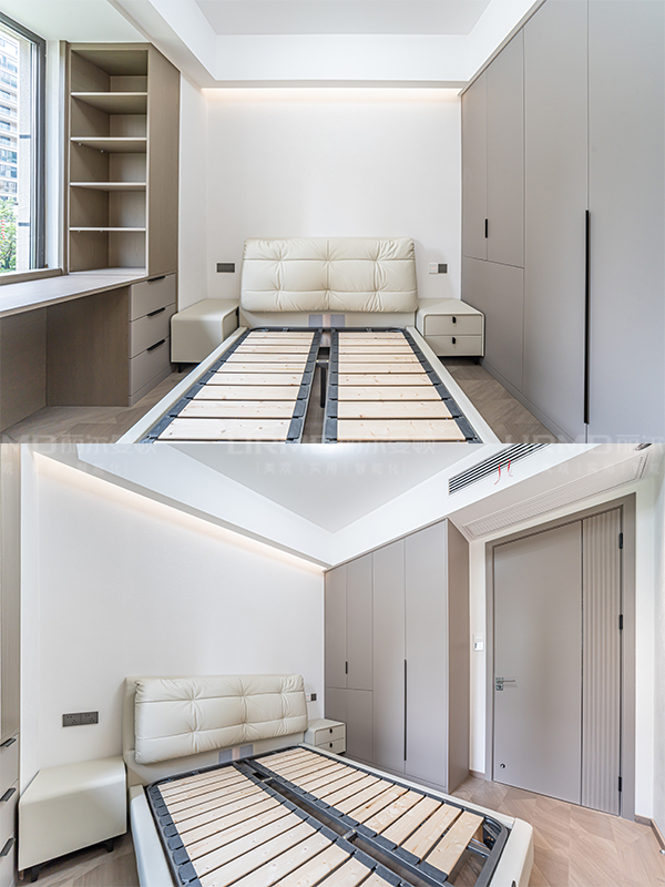 長沙靠譜裝修公司,長沙靠譜全屋定制,臥室衣柜加梳妝臺,意式極簡風,