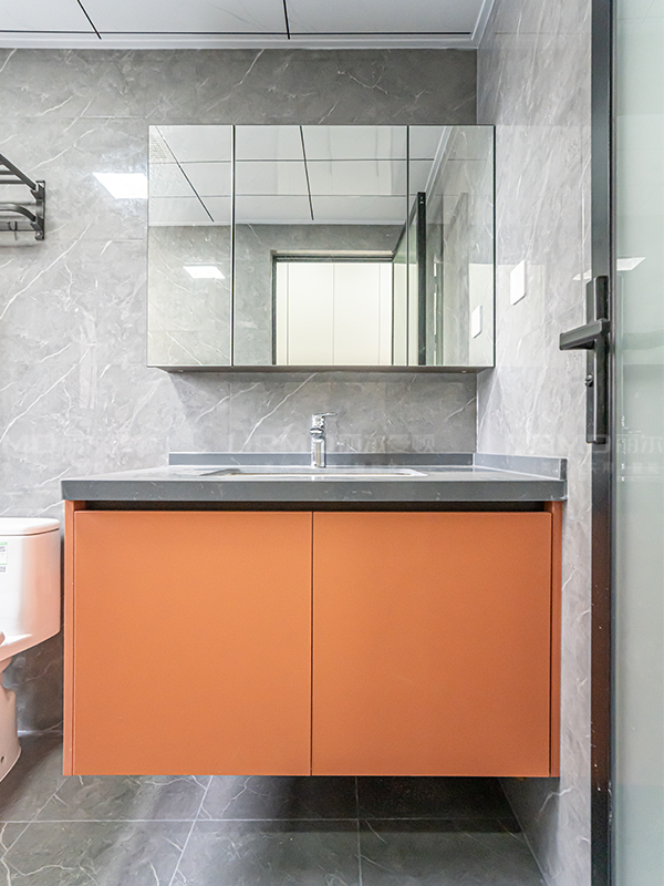 全屋門墻柜一體化,采用深石紋+深色木飾面的搭配,讓空間不沉悶又有層次感