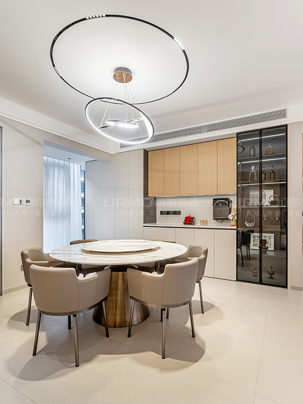 全房無主燈設(shè)計(jì),將現(xiàn)代輕奢精髓發(fā)揮極致。點(diǎn)光源+線性燈帶搭配,照明均勻而充足,浪漫溫馨。