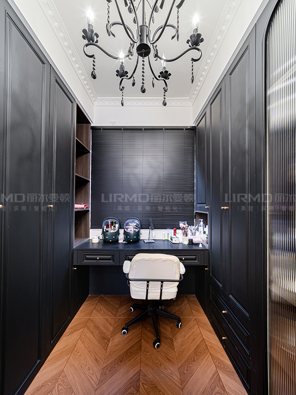 長(zhǎng)沙靠譜裝修公司,長(zhǎng)沙靠譜全屋定制,臥室衣柜加梳妝臺(tái),法式復(fù)古風(fēng),